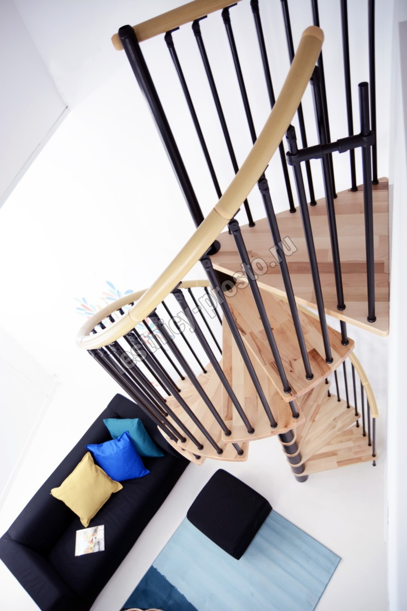 Перила изготовлены из массива бука и покрыты износостойким лаком.