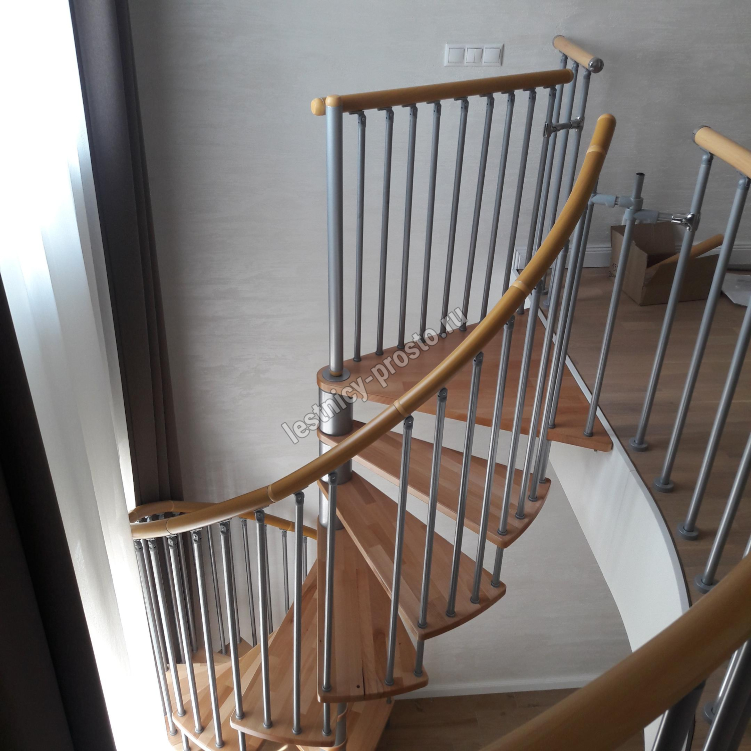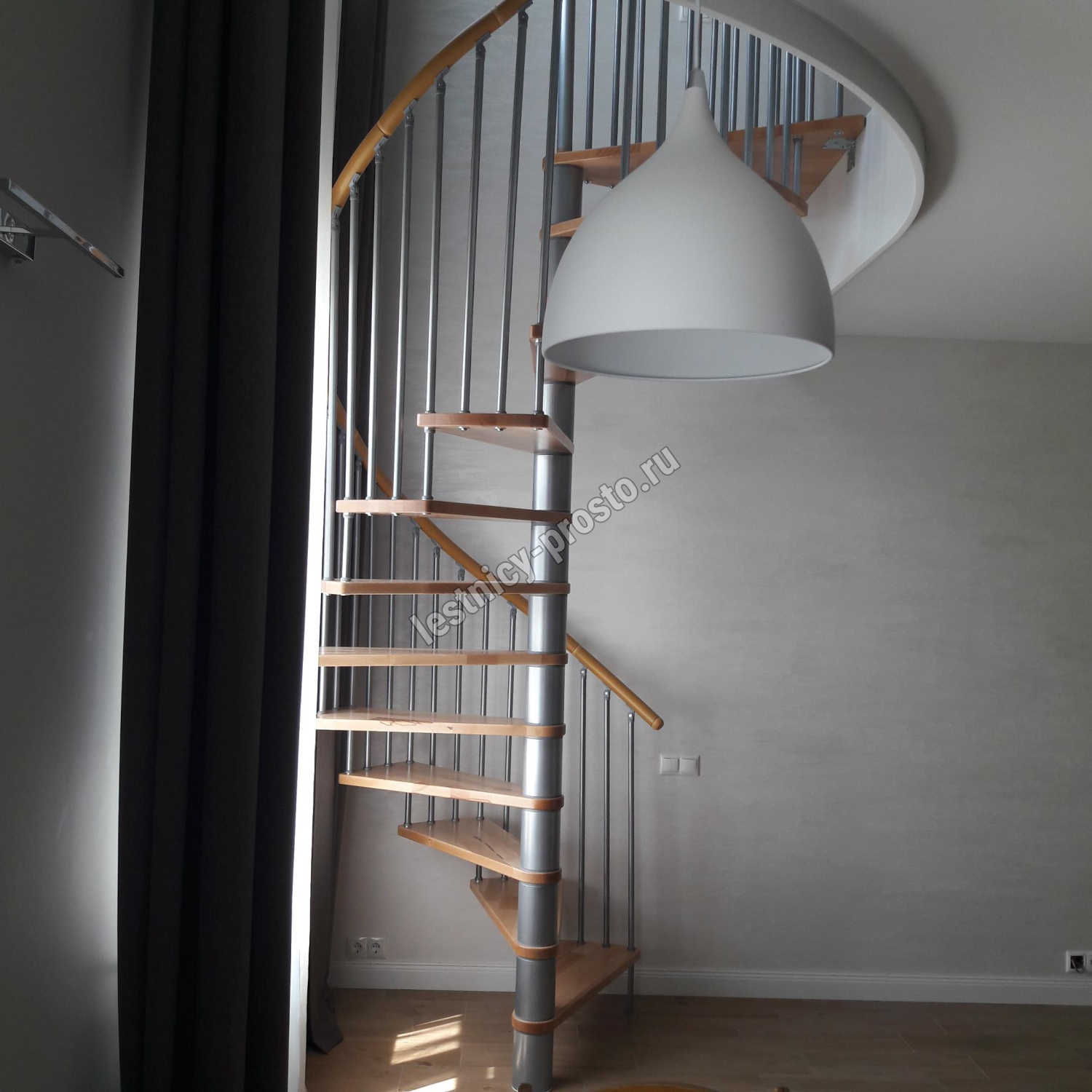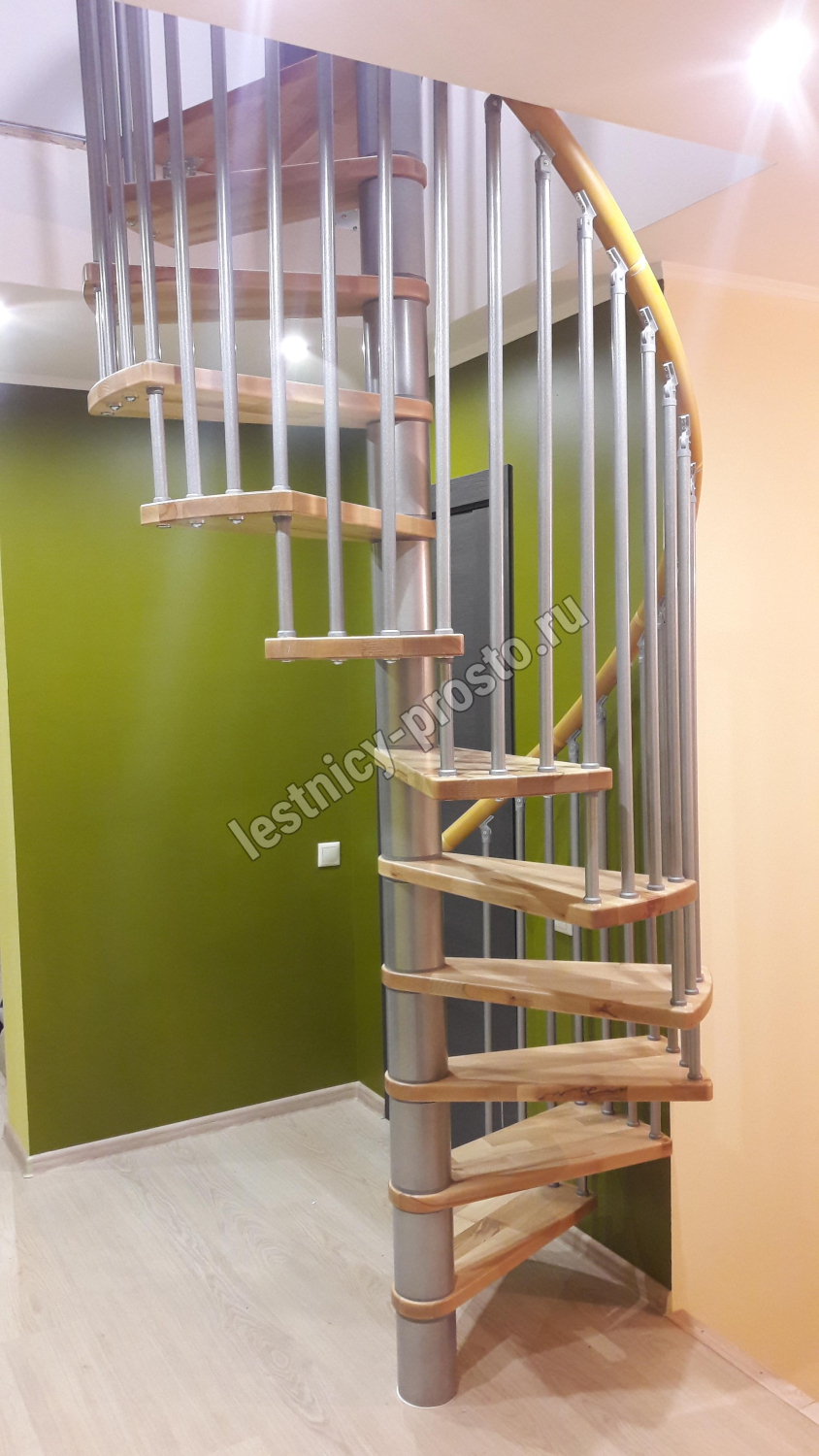 | Винтовая лестница SPIRAL WOOD d140 см, серебро, лакированный бук |