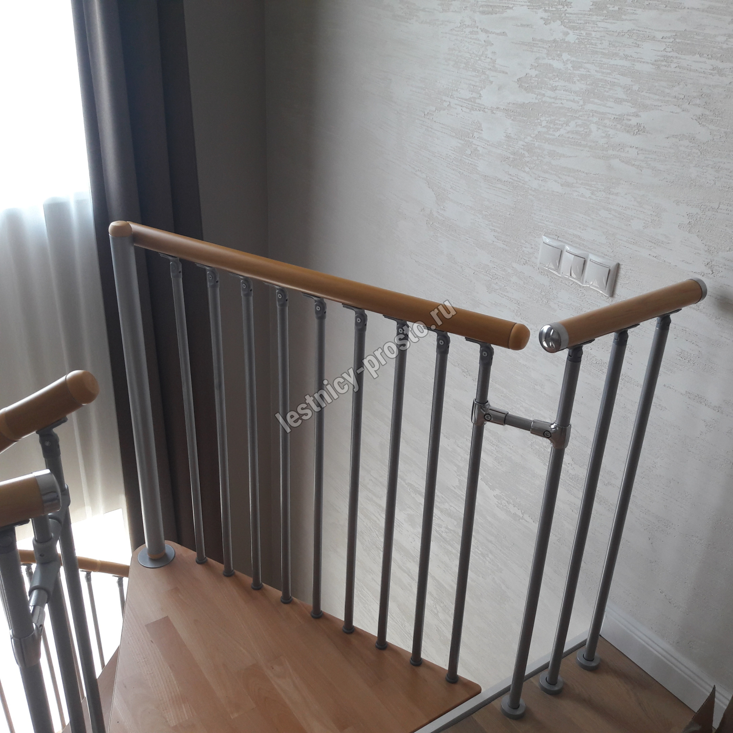 Ступени и поручень лестницы покрыты износостойким бесцветным лаком.