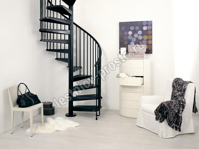Отделка лестницы всегда в черном цвете. Перила из полиуретана с алюминиевым сердечником черного цвета, как и износостойкие нескользящие панели на ступенях.