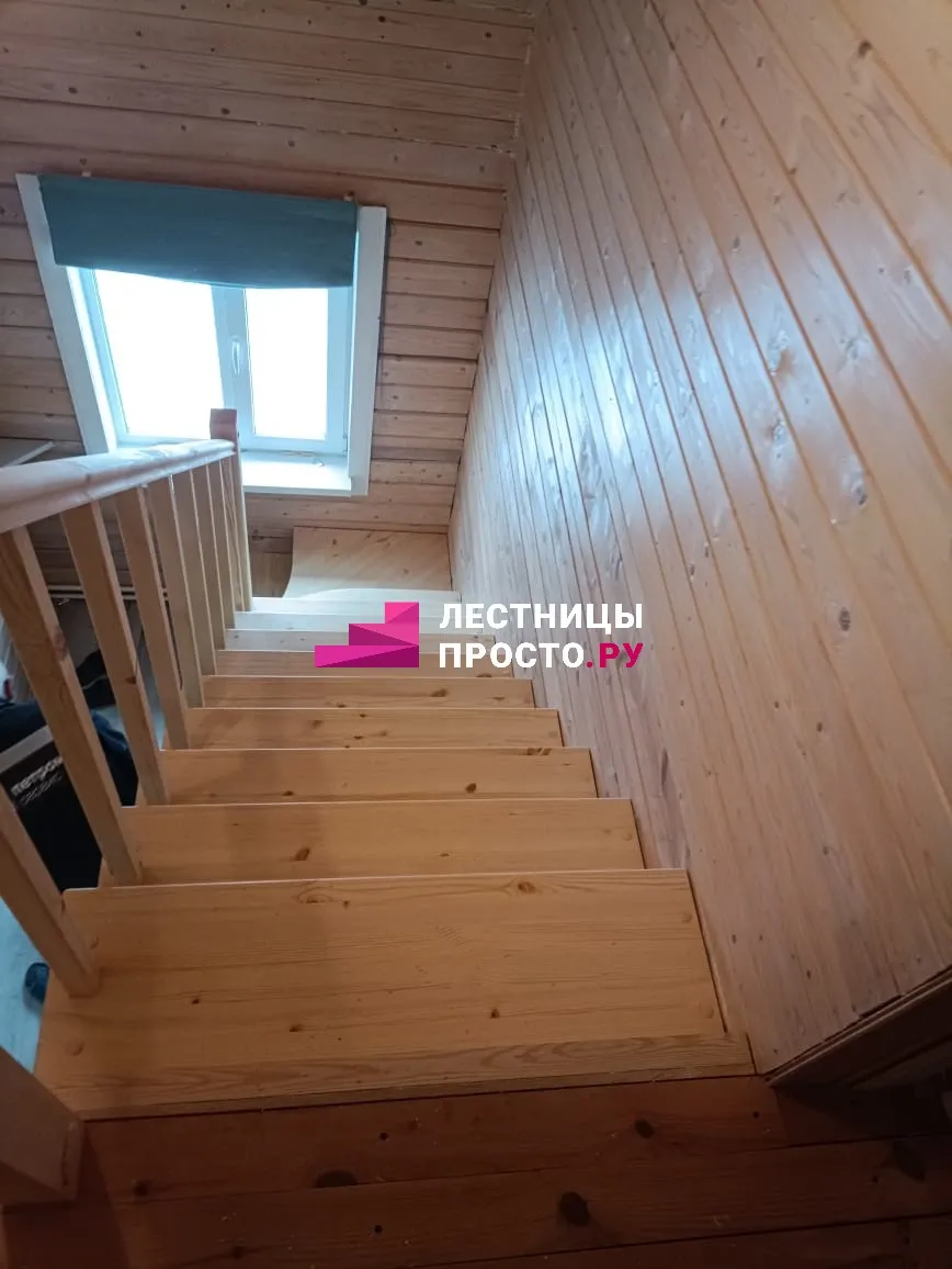 Лестница из сосны с поворотом без покраски