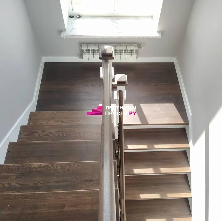 Отделка двухмаршевой бетонной лестницы деревом LP-1-44